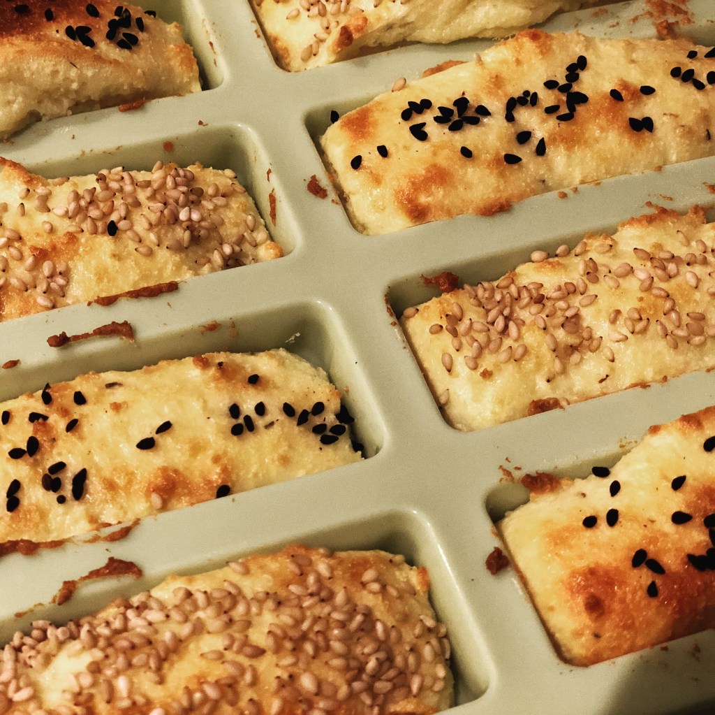 This is a nice, nut free recipe for the days when I am craving a small sandwich. I decorate it with sesame, black seed, or just some oregano. It freezes well, so I can just grab one out of the freezer when I am craving it.